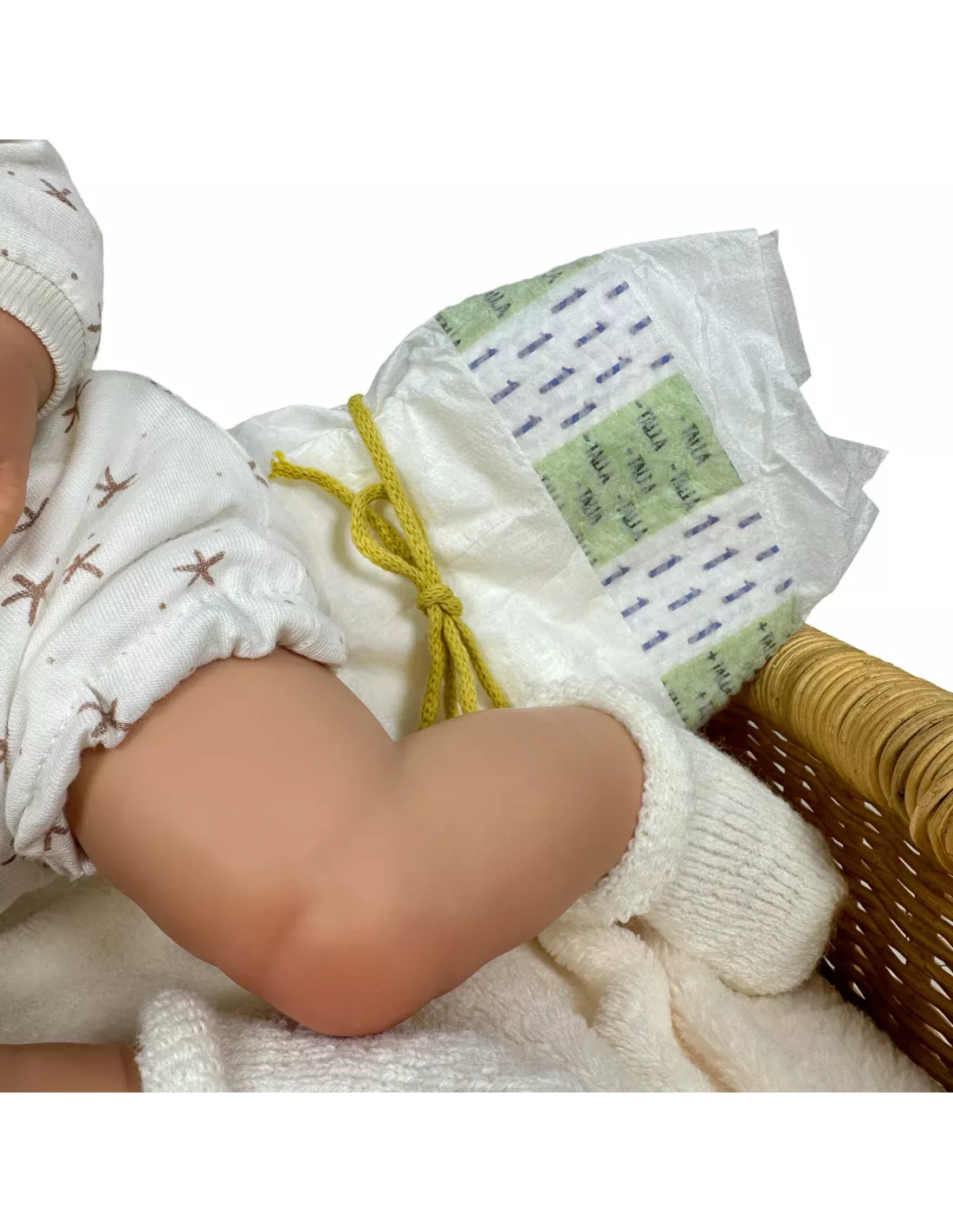 Il piccolo Adri Reborn è una bambola di 40 cm. Il suo corpo è morbido e i suoi arti sono fatti di vinile e, poiché è articolato, può adottare diverse posizioni. Caratteristiche speciali: Moccio al nasino, oltre ad arrossamento lungo il corpo. Ciglia in pelo naturale. Peso approssimativo: 750 gr. Accessori inclusi: - Morbida coperta. - Ciuccio con porta ciuccio. - Certificato di nascita. - A nido d'ape. Presentazione: nel caso. Valore educativo: Questa è una bambola che incoraggia il gioco simbolico, aiutando a sviluppare qualità come il valore emotivo e l'espressione dei sentimenti. Allo stesso modo, stimola anche il linguaggio, l'immaginazione e la propria autonomia. È il prodotto perfetto per i regali più speciali. Tutte le nostre bambole emanano un delicato aroma di vaniglia.