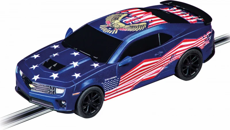 Set di pista Carrera GO!!! lungo 4,9 m con auto Ford Mustang '67 e Chevrolet Camaro, include un ponte, rettilinei, curve, un looping, un pezzo con contatore giri e altri componenti. Puoi costruire ulteriori tracciati diversi secondo la tua fantasia.