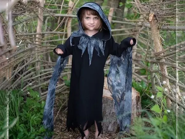 Vestito e cappello da strega di velluto viola, è tutto incentrato sul velluto! Questo vestito è realizzato con uno splendido morbido velluto nero e rifinito con accenti viola. Un bellissimo tulle viola glitter impreziosisce la vita, lo scollo, le maniche e la balza sul fondo. Questo vestito include un cerchio per pienezza e la gonna di velluto nero drappeggia sopra il cerchio. C'è un ragno glitter nero sulla vita all'altezza dei fianchi, e anche un ragno glitter nero pende dall'incavo del cappello! Elegante, elegante e assolutamente adorabile!