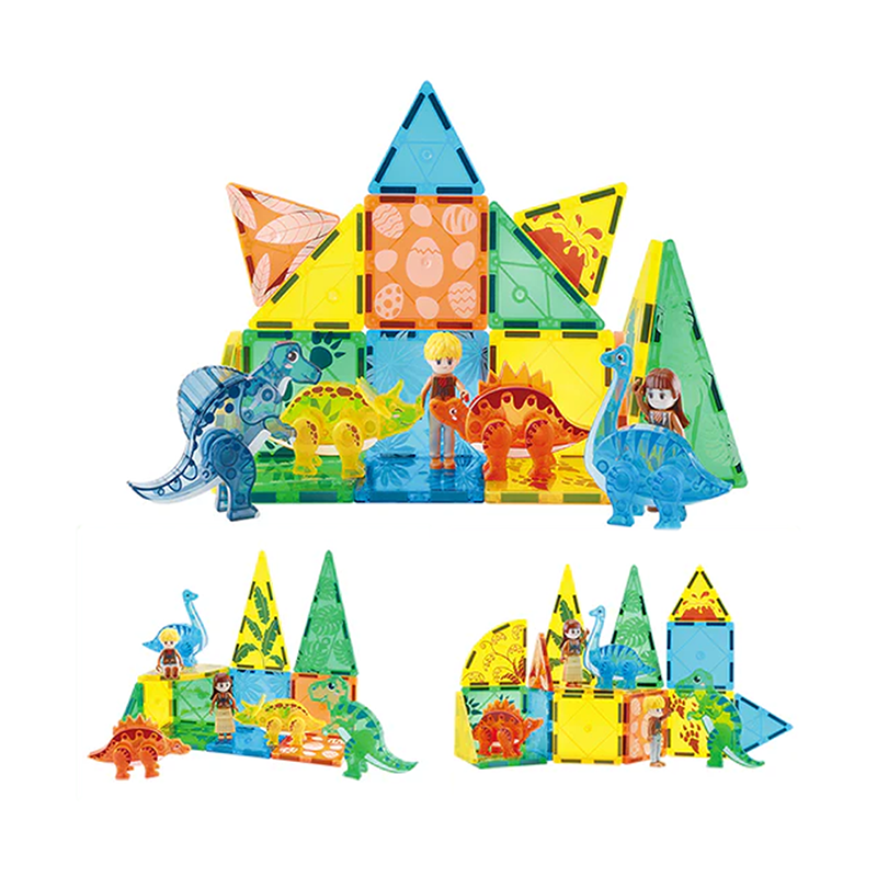 Set di costruzioni magnetiche a tema dinosauri.