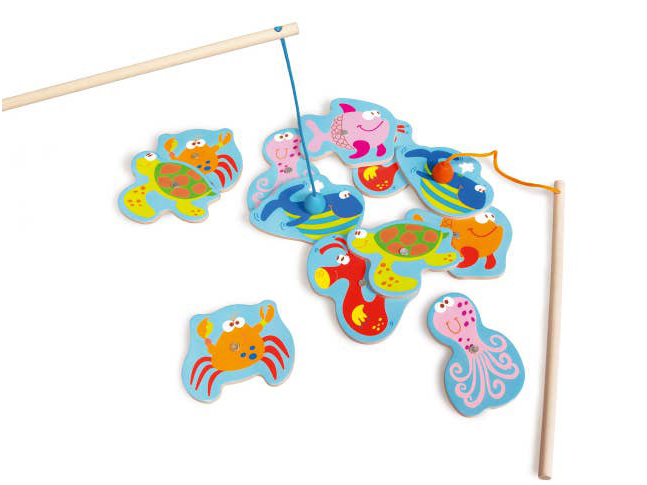 Ci sono così tanti pesci divertenti nel mare. Prova a catturarli tutti, chi pesca più creature sottomarine è il vincitore! È un gioco che cresce insieme a te, perché i pescatori esperti possono sommare i numeri sul pesce e determinare il vincitore in questo modo. Recupera il pesce da questa scatola fatta a mano forte e attraente.