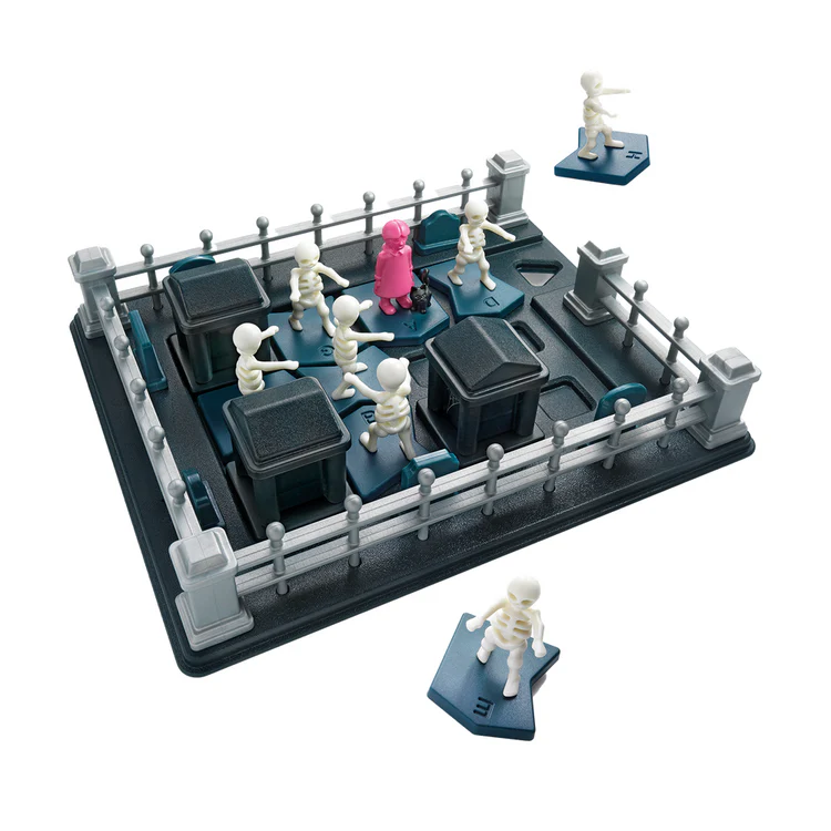 Gli scheletri sono svegli e hanno un conto in sospeso con te! Riuscirai a evitarli e a raggiungere l'uscita? Sposta e ruota i pezzi del puzzle negli spazi vuoti adiacenti, uno alla volta, per creare la tua via di fuga.