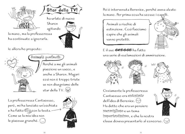 Oggi in classe è successa una cosa fantastica: la 1 B ha vinto un concorso! E adesso spetta a noi dipingere una palizzata con tutti gli animali a rischio di estinzione. Ovviamente Sharon e io ci diamo un sacco da fare con i nostri animali. Non vogliamo che i panda e i diavoli della Tasmania si estinguano. Io ho scelto di dipingere una tartaruga. Perché a casa abbiamo Uga. È vecchissima e anche un pochino noiosa, ma non voglio assolutamente che si estingua! E poi, allo zoo ci sono tantissimi altri animali che possiamo salvare…