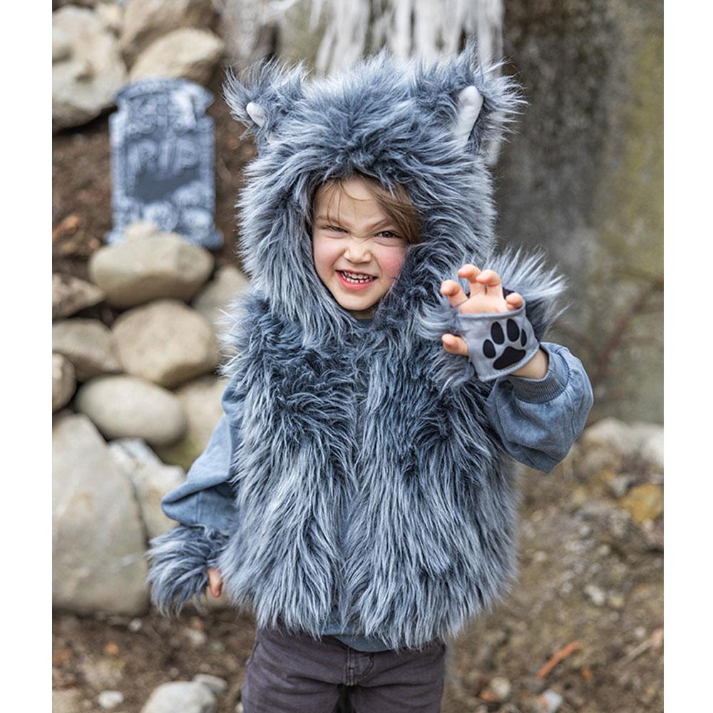 Questo favoloso costume è composto da un gilet foderato in tessuto scozzese rosso e da un lungo esterno in pelliccia grigia, un cappuccio con morbide orecchie, una soffice coda e guanti senza dita in pelliccia con adorabili impronte di zampe di cane. Scatena la tua immaginazione e diventa il lupo più divertente!